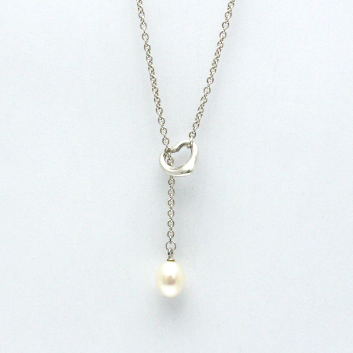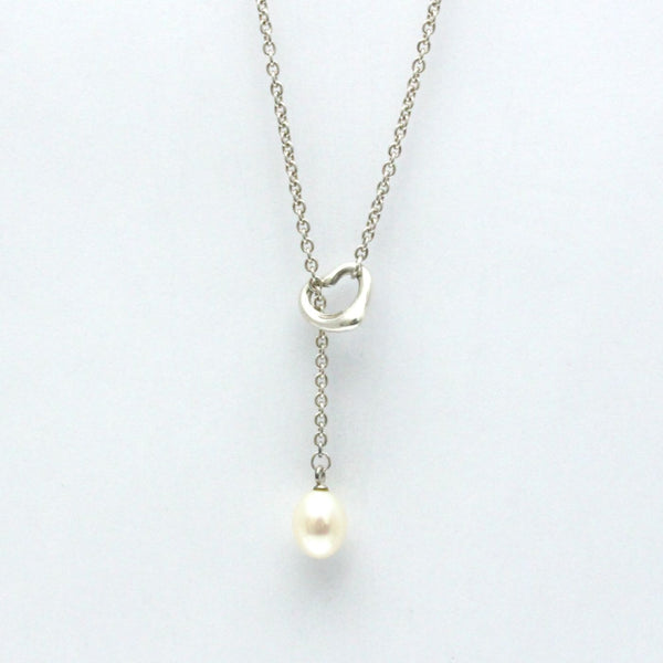 Tiffany Open Heart Freshwater Pearl Lariat Necklace Silver 925 Freshwater Pearl Men,Women Fashion Pendant Necklace (Silver)