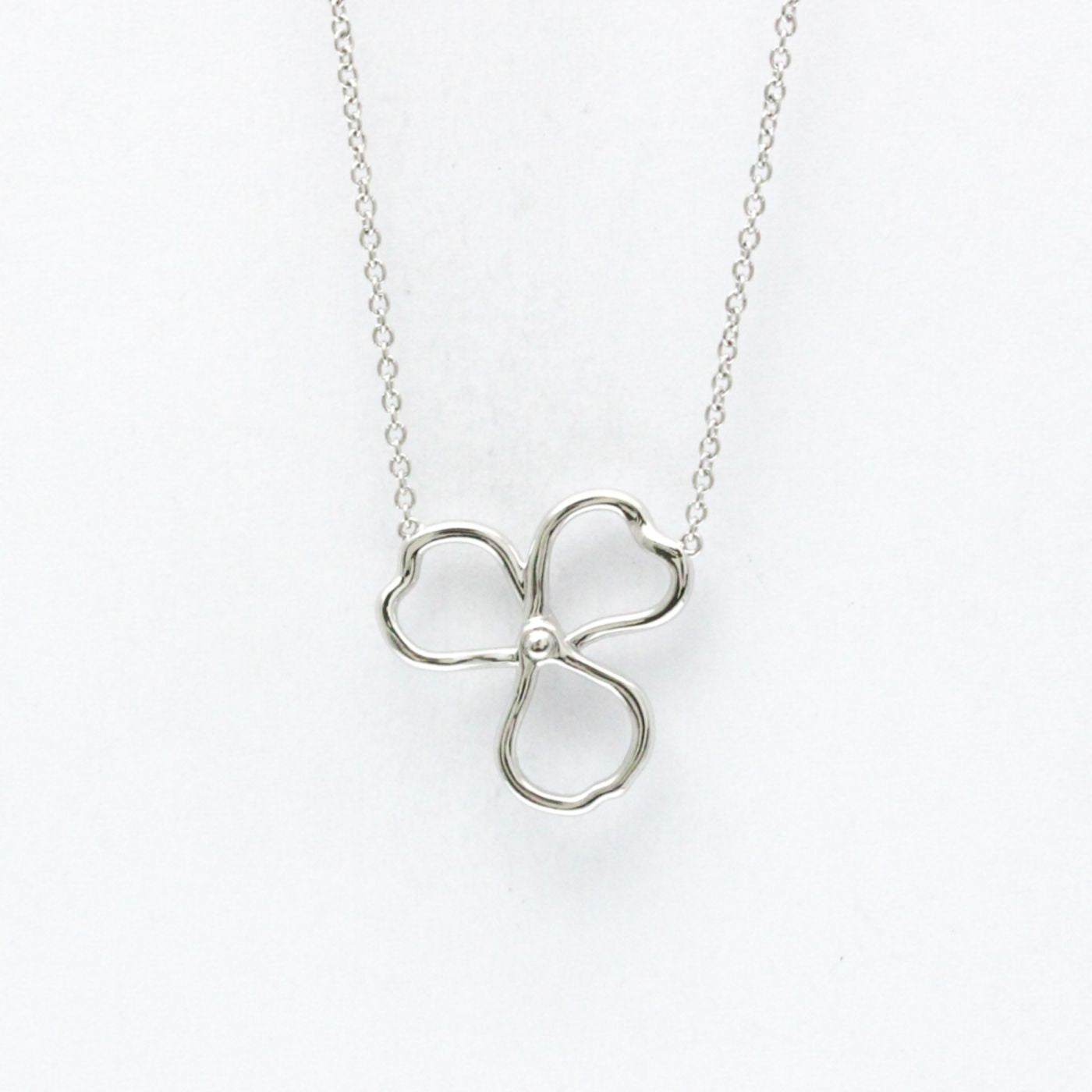Tiffany Open Paper Flower Necklace Platinum Diamond Women,Men Fashion Pendant Necklace (Silver)