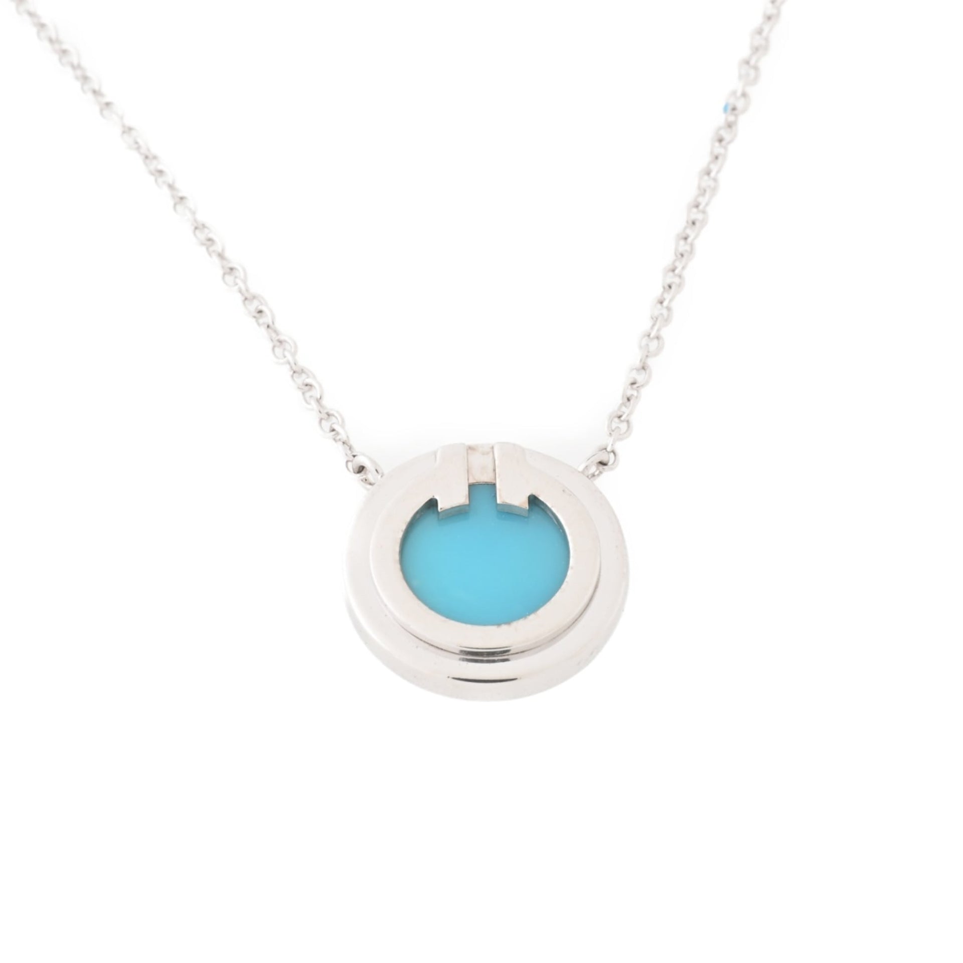 Tiffany TIFFANY&Co. T Turquoise Circle Pendant TWO Necklace Au750 K18WG White Gold L-157162