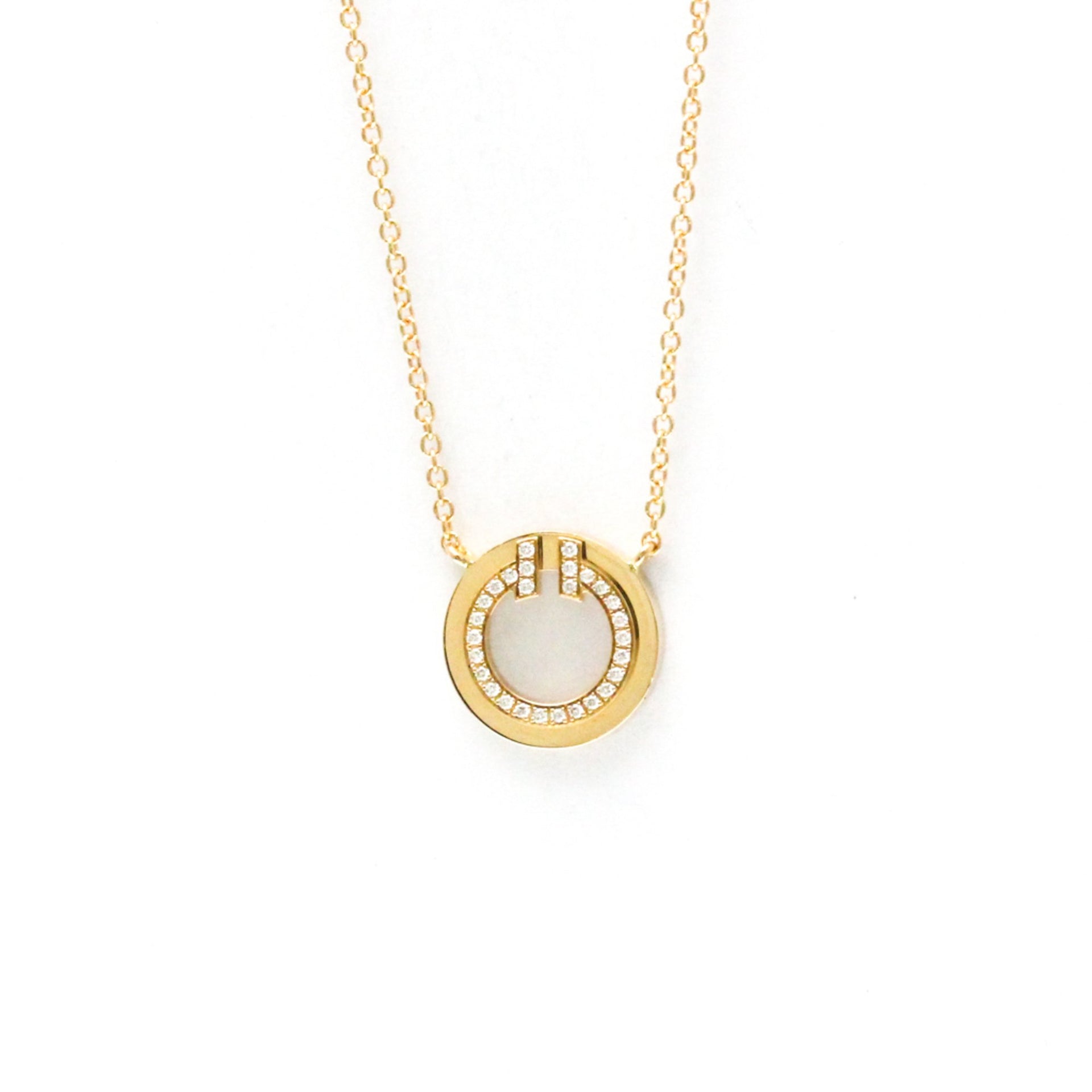 Tiffany Tiffany T T Circle Mini Diamond Necklace Pink Gold (18K) Diamond,Mother Of Pearl Men,Women Fashion Pendant Necklace (Pink Gold)