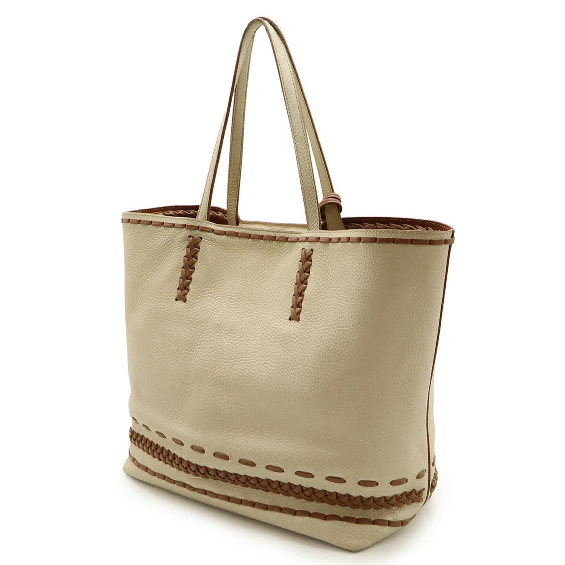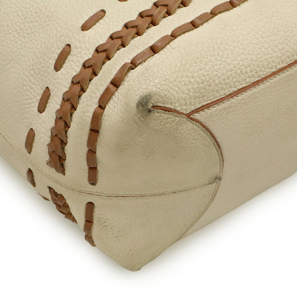 TOD\'S Gypsy Whipstitch Tote Bag, Shoulder Tote, Leather, Beige, Brown