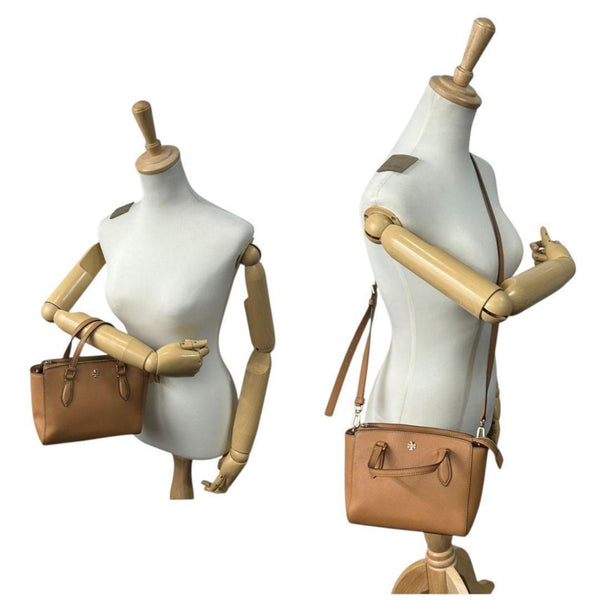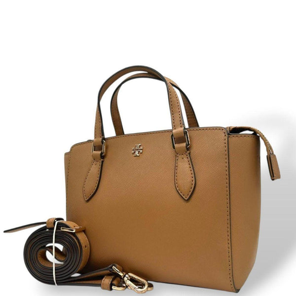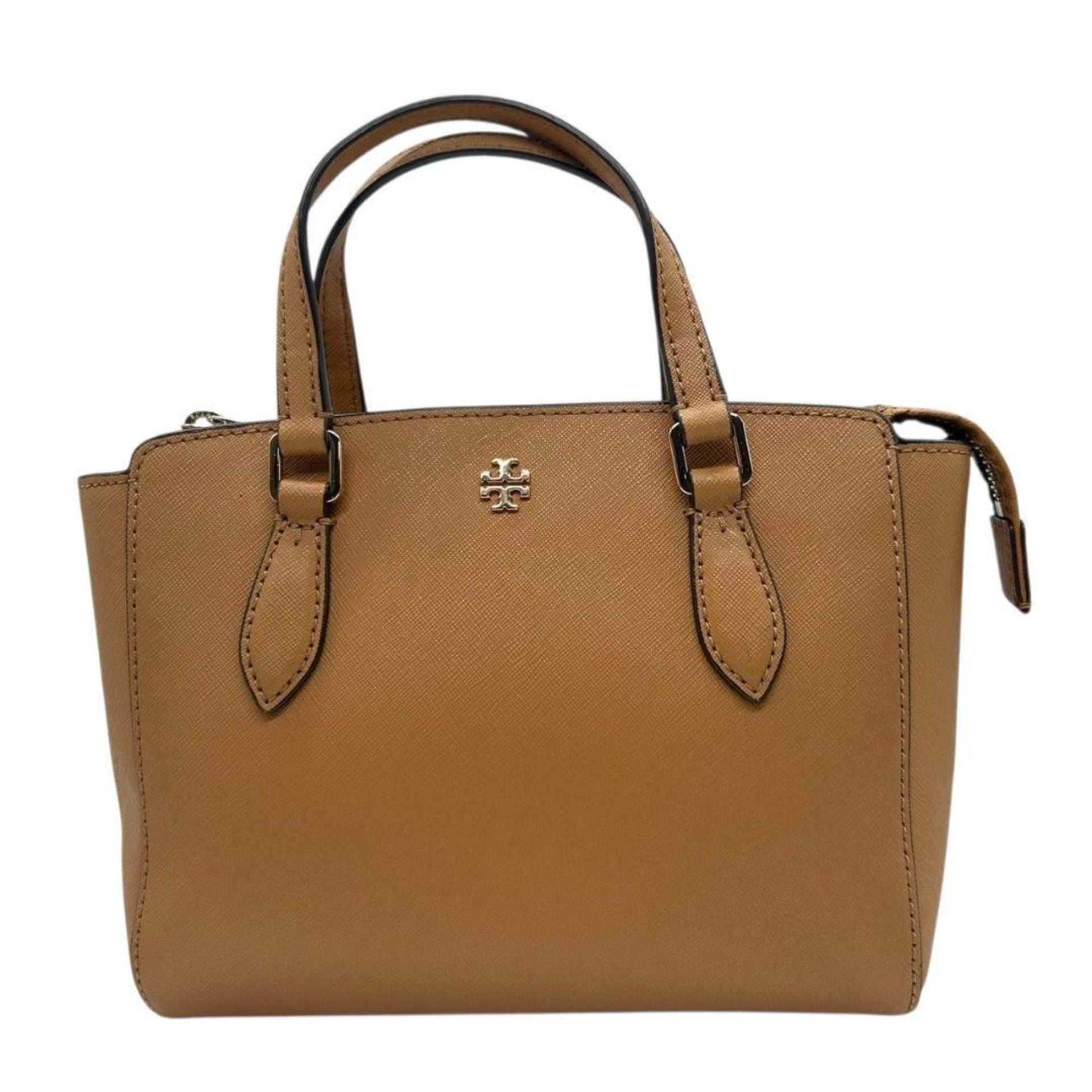Tory Burch Saffiano Leather Handbag, 2-Way, Shoulder Bag, Tote Crossbody Brown, Gold Hardware, Logo Plate, S42