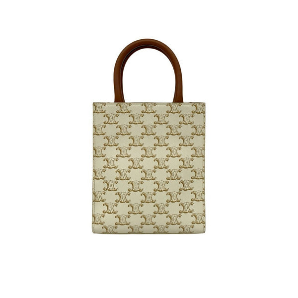 Unused Celine Mini Vertical Triomphe Canvas Cabas Leather 2-Way Hand/Shoulder Bag, Ivory, 46134