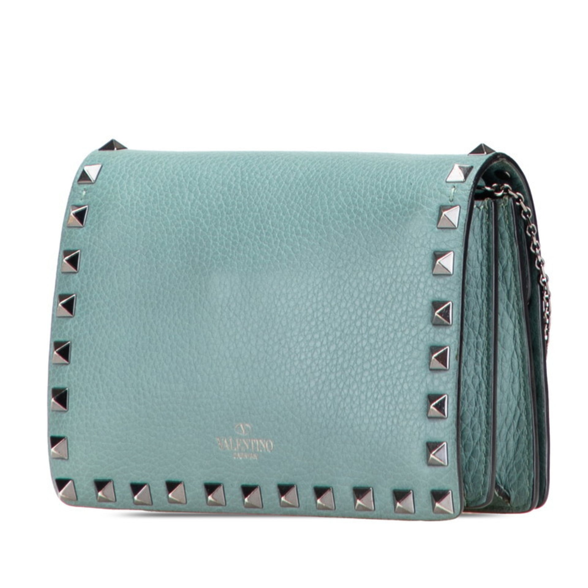 Valentino Rockstud Chain Shoulder Bag in Green Leather for Women.