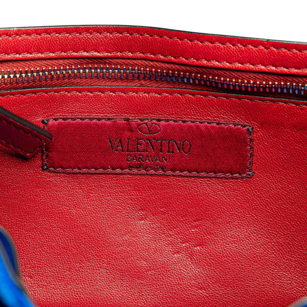 Valentino Rockstud Chain Wallet Shoulder Bag in Blue and Gold Velvet for Women