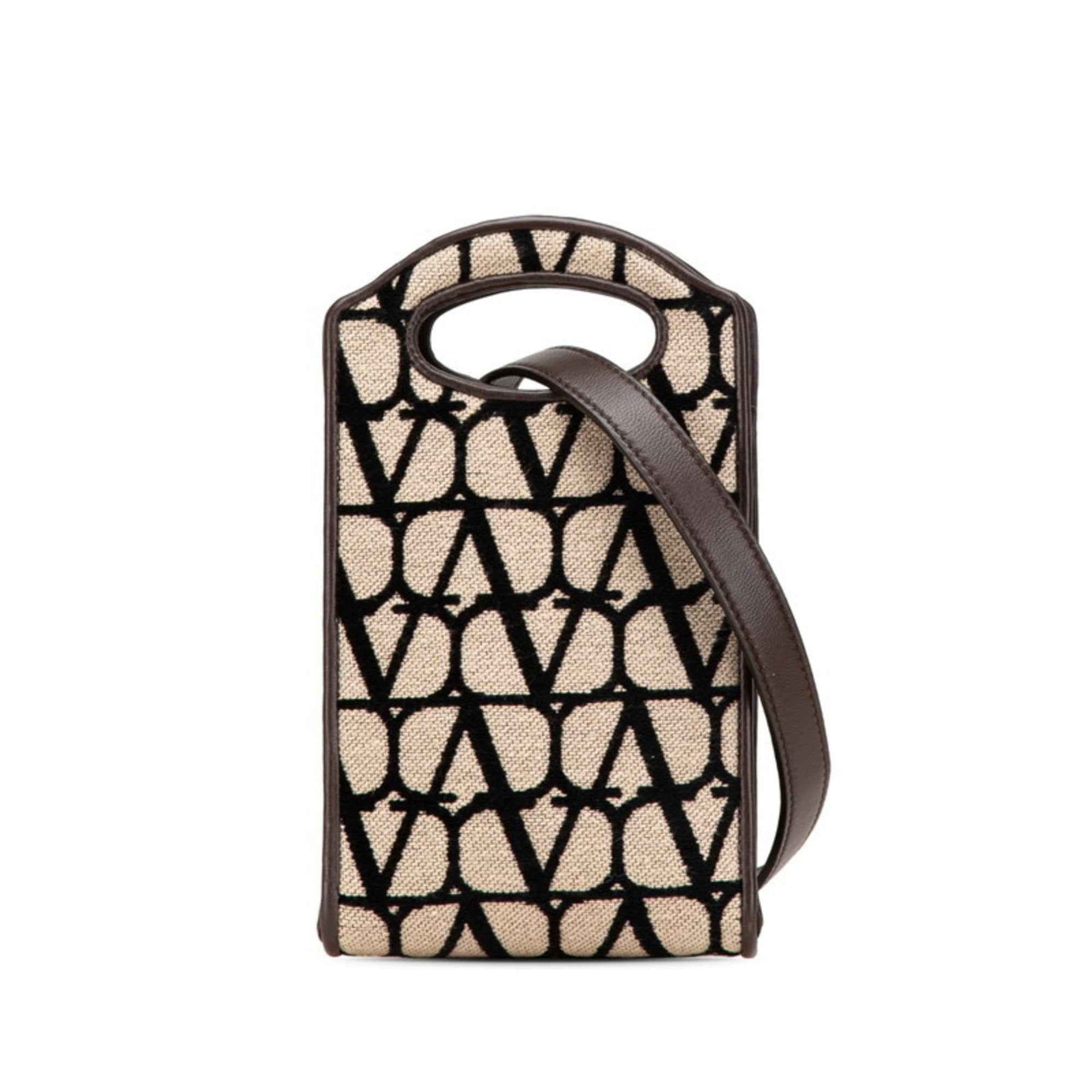 Valentino Toile Iconograph Handbag/Shoulder Bag, 2-Way, Beige/Brown, Cotton and Leather, Women\'s, VALENTINO