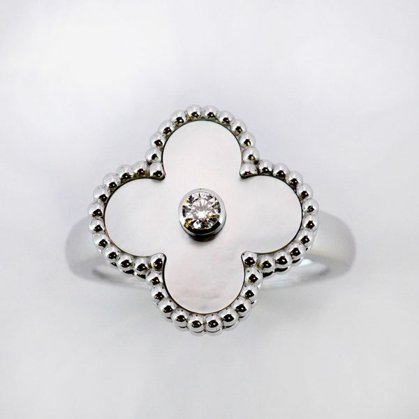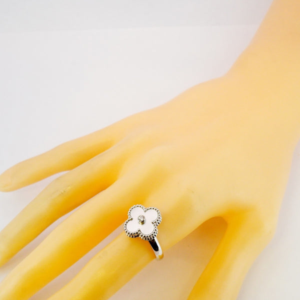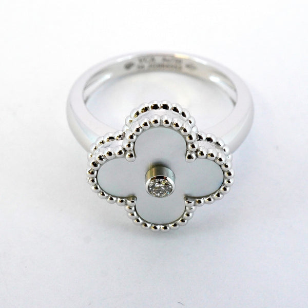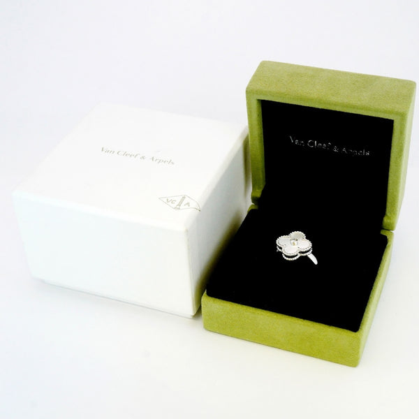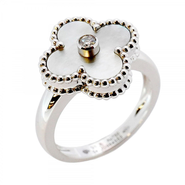 Van Cleef & Arpels Alhambra Ring, 1PD, 18K White Gold, Diamond, Mother-of-Pearl, #54, Women\'s