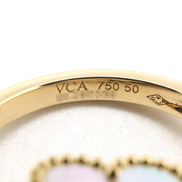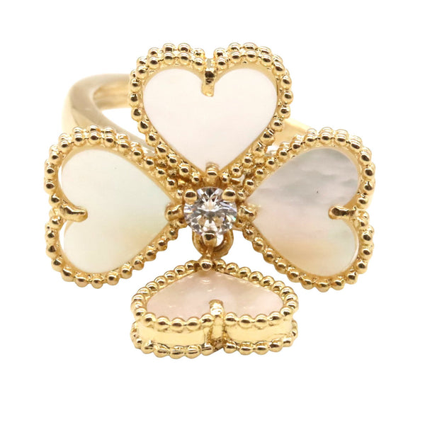 Van Cleef & Arpels Sweet Alhambra F-Yage Mother-of-Pearl and Single Diamond Ring, 18K Yellow Gold, Diamond, Mother-of-Pearl, Clear, Women\'s