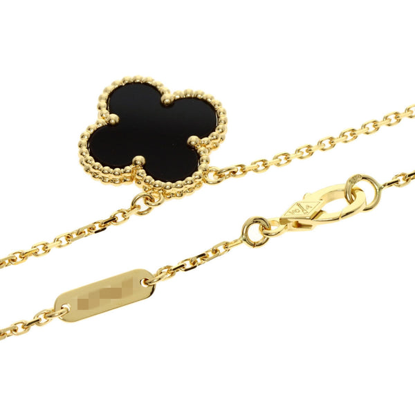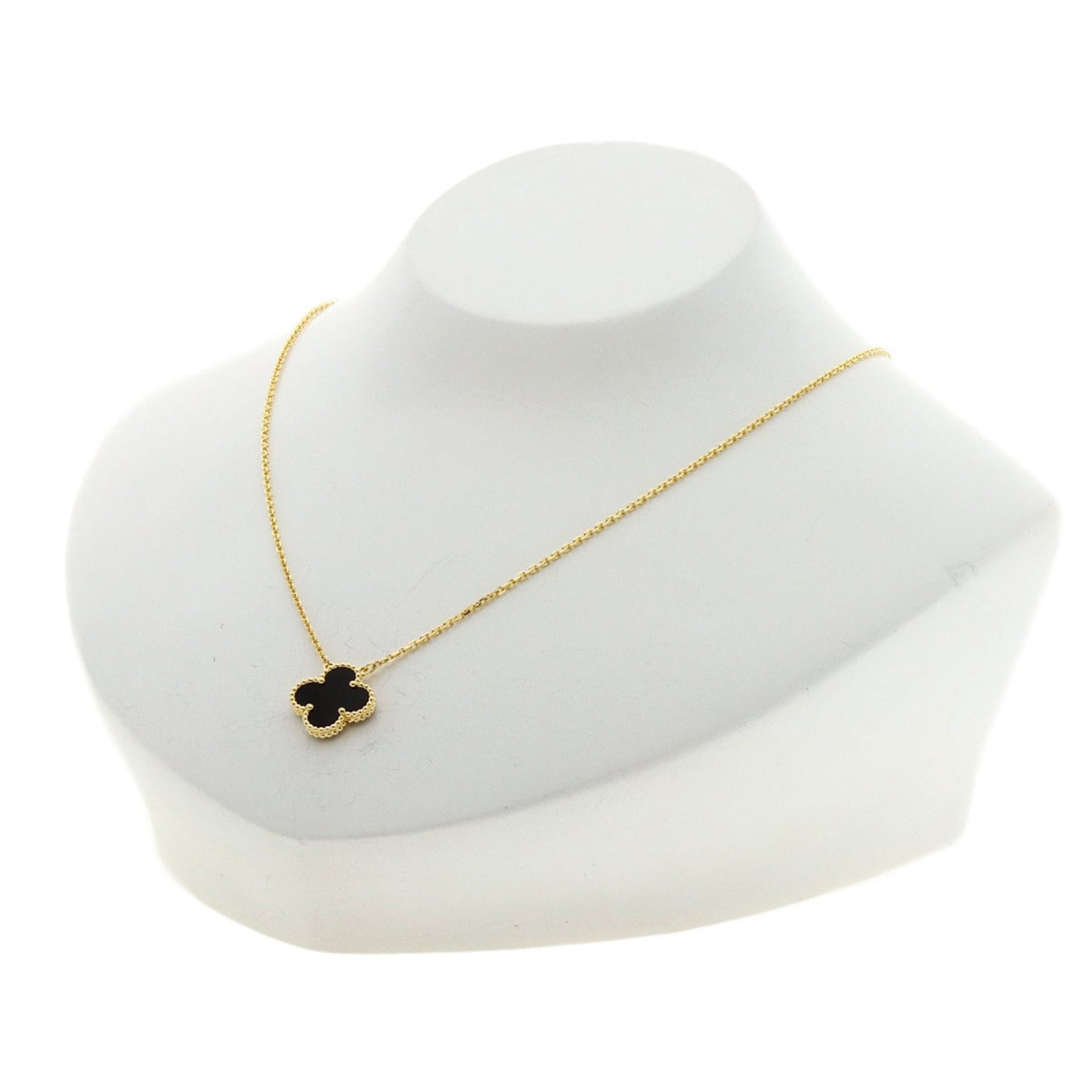Van Cleef & Arpels Vintage Alhabra Onyx Necklace in 18K Yellow Gold for Women.