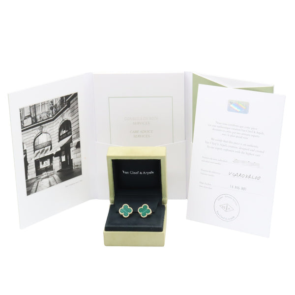 Van Cleef & Arpels Vintage Alhambra Earrings in 18K Yellow Gold with Malachite and Green Stones for Women (VCARO3QL00)