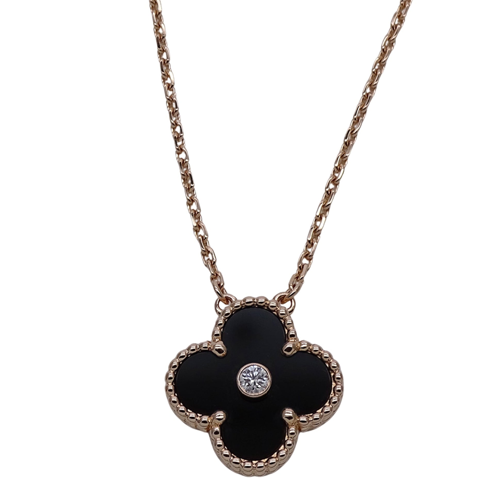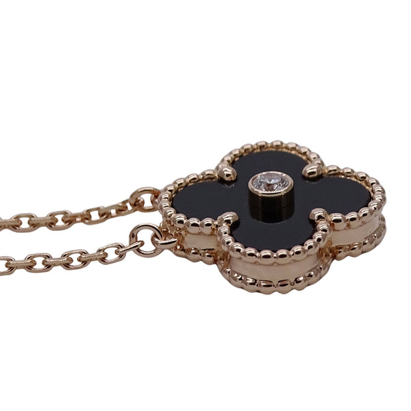 Van Cleef & Arpels Vintage Alhambra Necklace for Women, 2016 Christmas Limited Edition, Holiday 750PG Pink Gold with Onyx and Diamonds, Polished