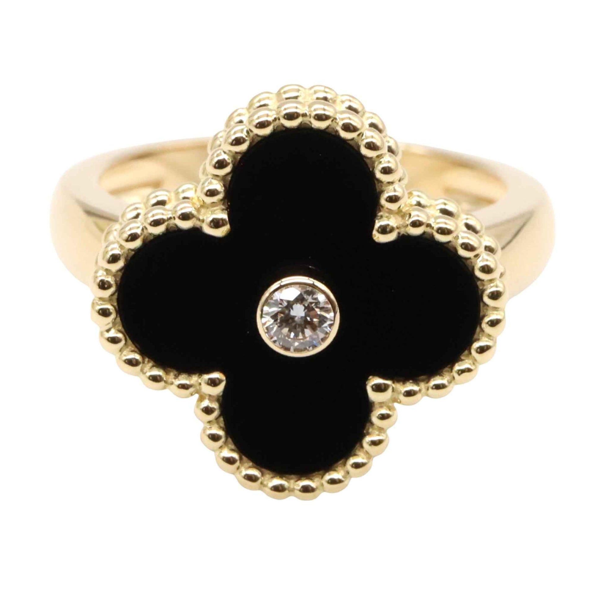 Van Cleef & Arpels Vintage Alhambra Ring, Onyx, 1PD, 18K Yellow Gold with Diamonds, Clear, Black, Women\'s