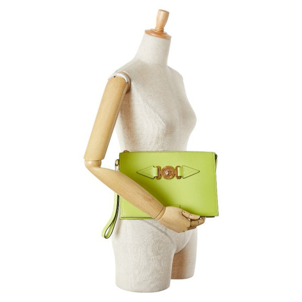 Versace Medusa clutch bag/second bag in light green leather for women.