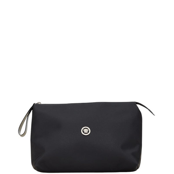 Versace Medusa Pouch Clutch Bag in Black Nylon and Leather for Women