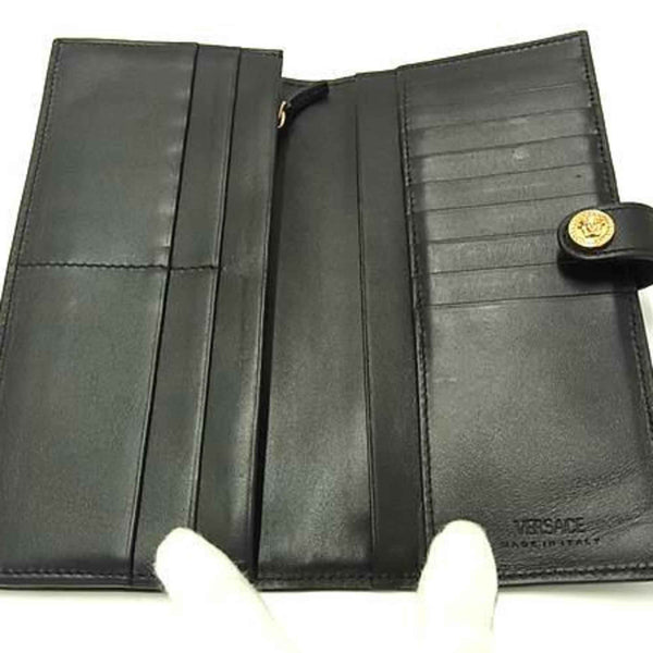 VERSACE Medusa Wallet - Black Leather Bifold Long for Men and Women
