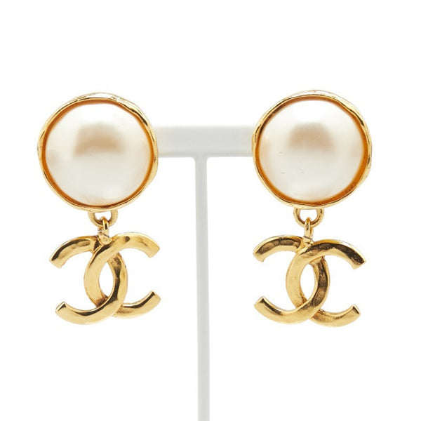 Vintage Chanel Coco Mark Swing Earrings, Gold Plated with Faux Pearls, Women\'s