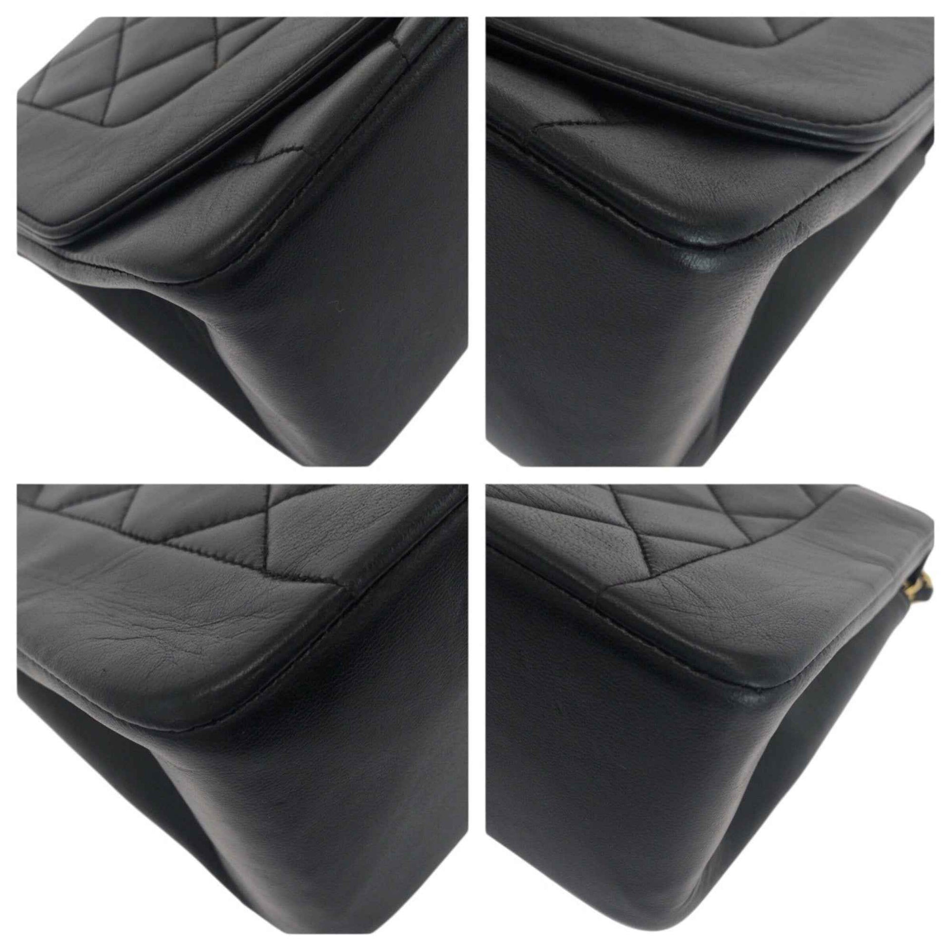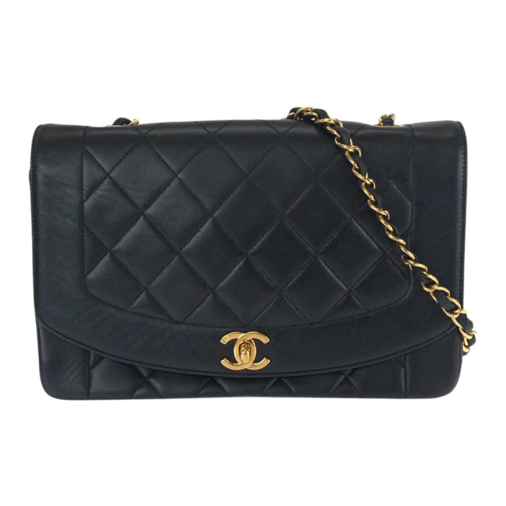 Vintage CHANEL Matelasse Diana Flap Coco Mark Black Lambskin Shoulder Bag with Gold Hardware, Chain for Women