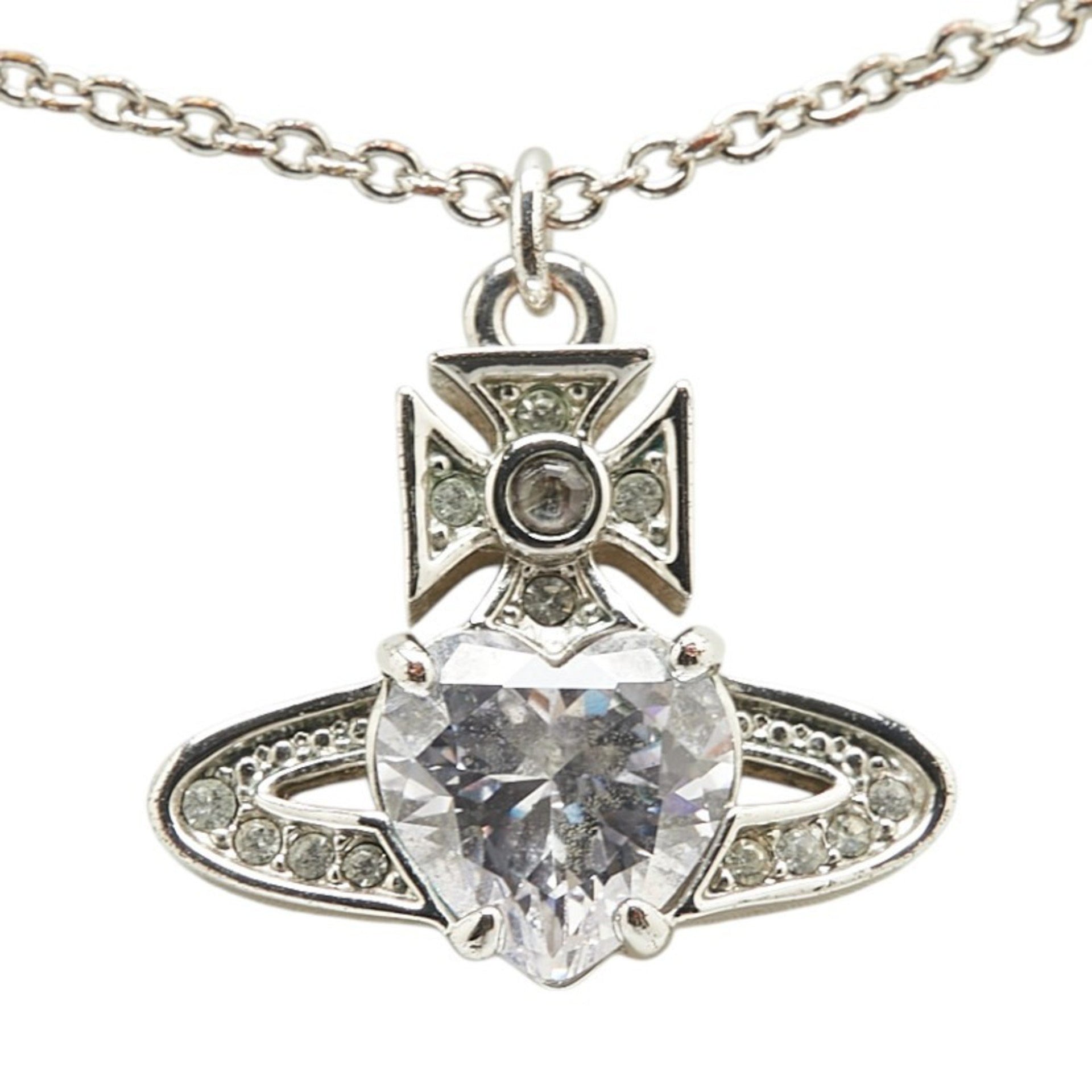 Vivienne Westwood Ariella Heart Motif Beaded Necklace in Silver Metal with Rhinestones for Women