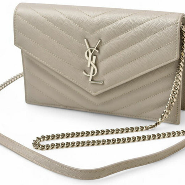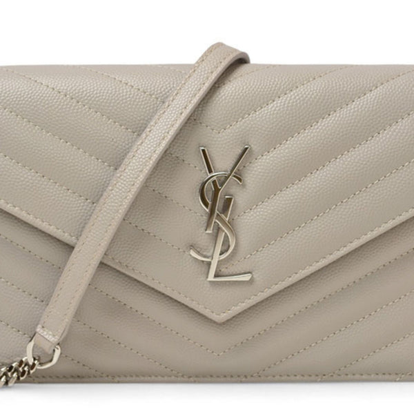 YSL Saint Laurent Monogram Envelope Bag, Light Gray, Chain Wallet, Clutch, Long 393953