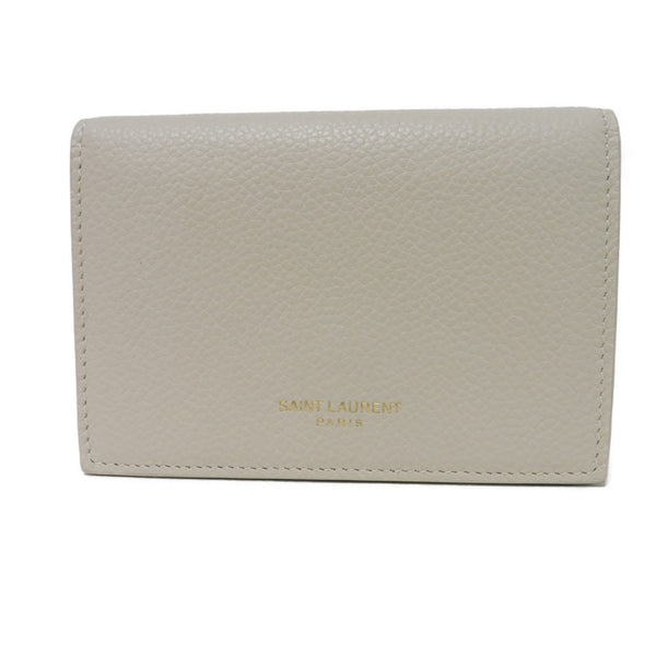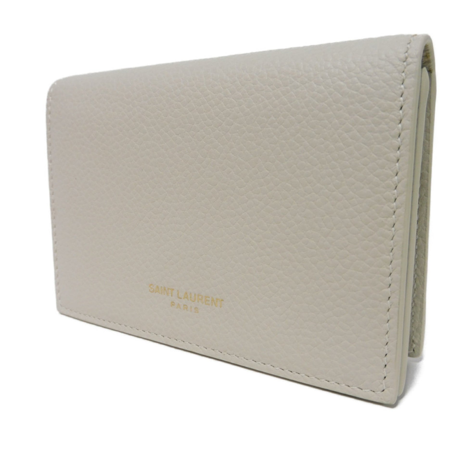Yves Saint Laurent Saint Laurent Paris Card Case, Holder, Grain Powder Textured Leather, Bi-fold, Ivory, 468994, Men\'s, Women\'s