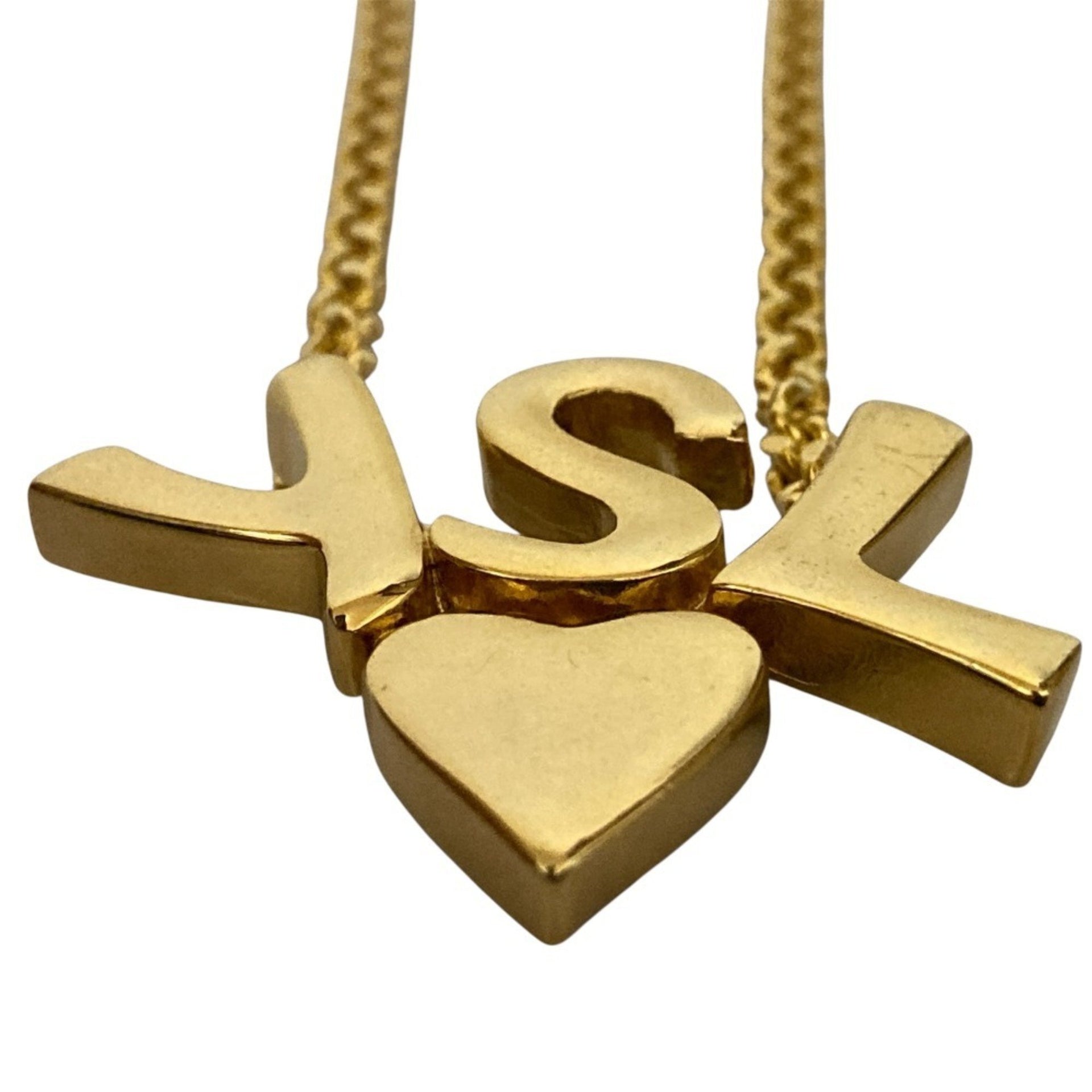 Yves Saint Laurent YSL Heart Necklace Pendant Gold Color Women\'s
