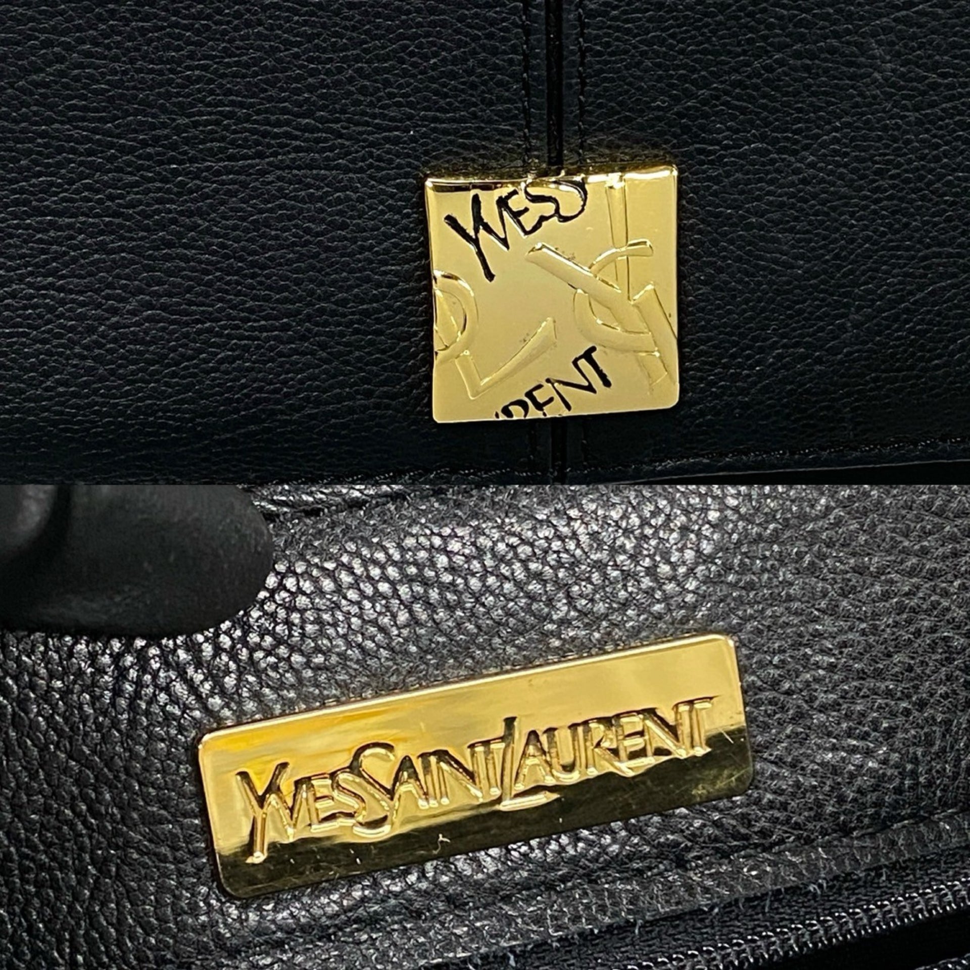 Yves Saint Laurent YSL logo hardware genuine leather handbag mini tote bag black 35676