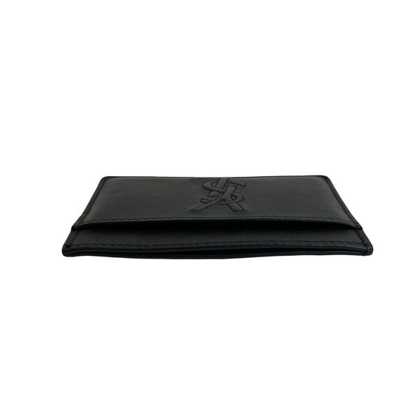 YVES SAINT LAURENT YSL logo stitched leather business card holder, black, 64838