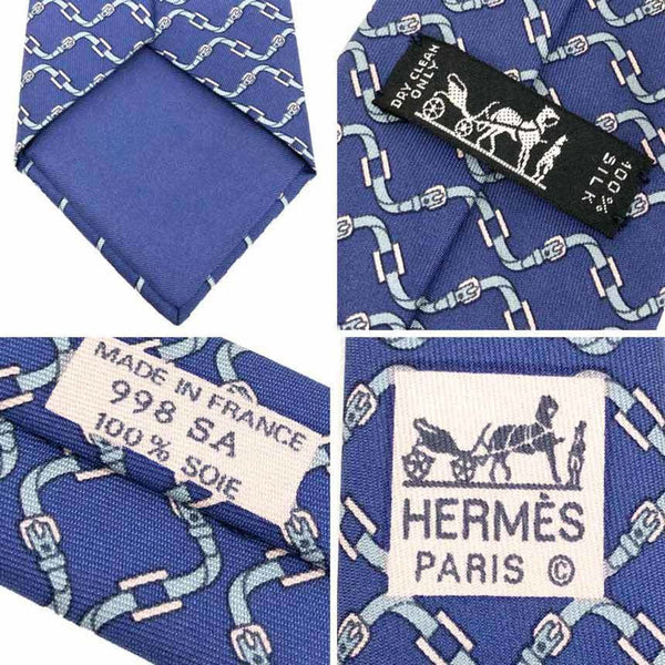 Hermes HERMES Silk Tie Belt Pattern Navy Twill Men\'s