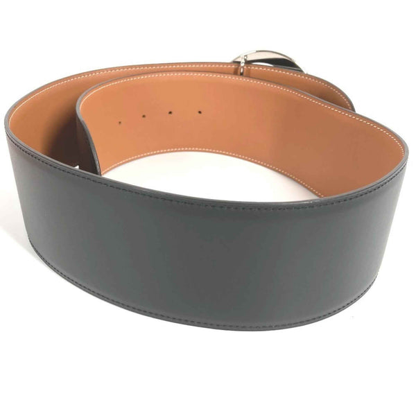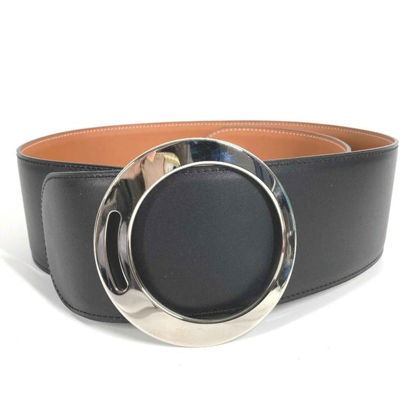 HERMES Wide Belt, Accessory, Buckle Leather, Women\'s, Black
