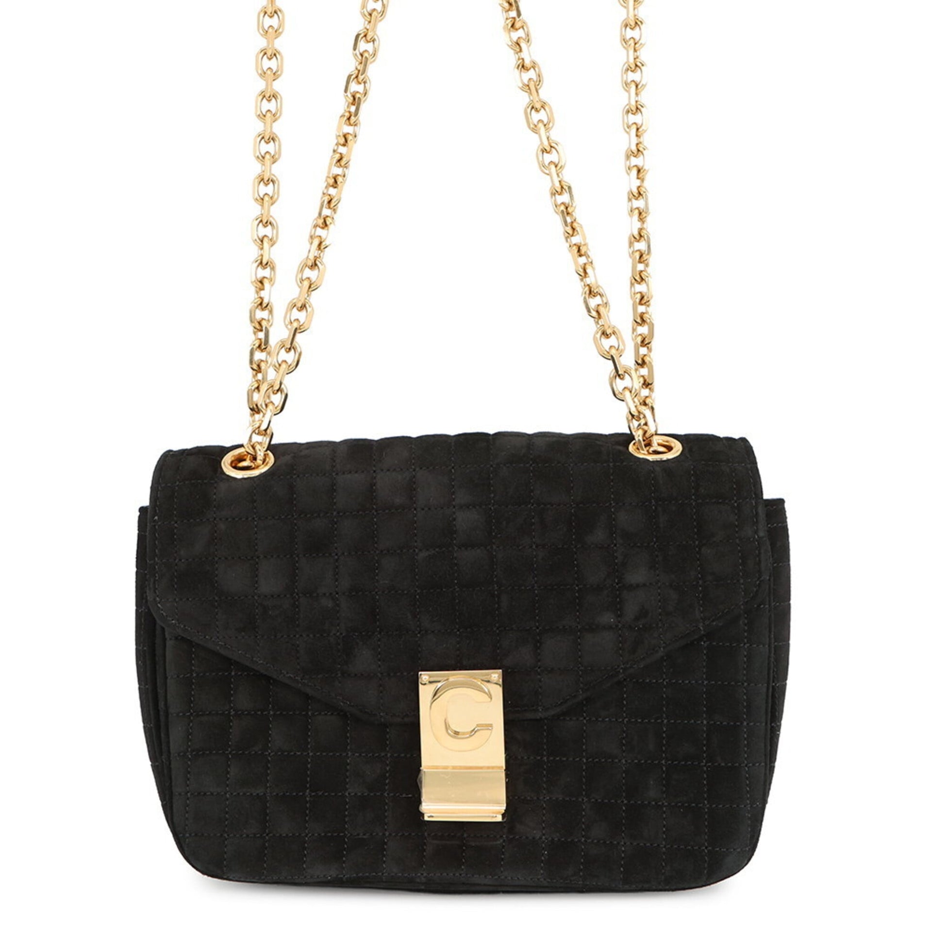 Celine Chain Shoulder Bag C Medium Suede 187253BJI.38NO CELINE Handbag Black
