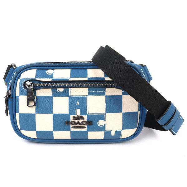 COACH CR210 Checkerboard Print Elias Mini Belt Bag, Coated Canvas, Smooth Leather, Blue Jay Chalk, Body Shoulder Women\'s