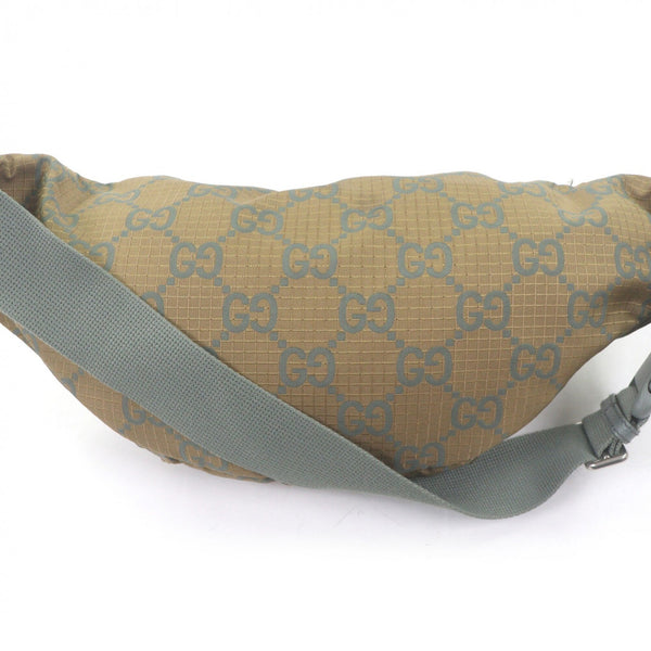 GUCCI 792287 Ripstop Nylon GG Logo Pattern Belt Bag/Body Bag/Waist Pouch with Patch, Khaki, Made in Italy, Men\'s