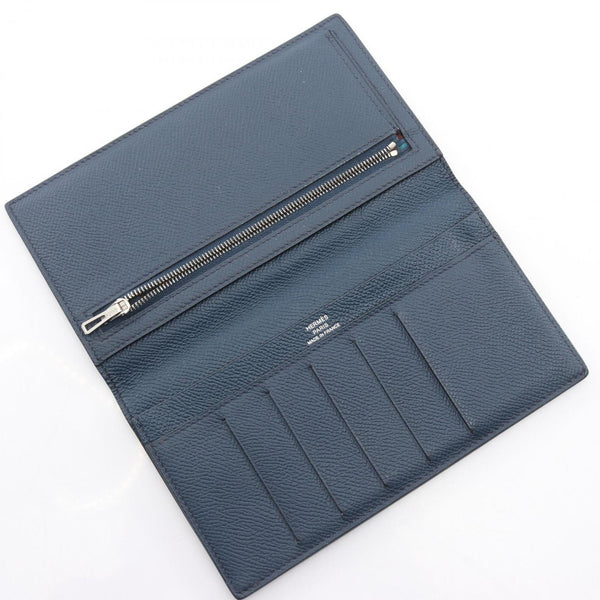 Hermes Citizen Twill Long Silk In Bi-fold Wallet, Leather, Veau Epsom, Women\'s, Navy