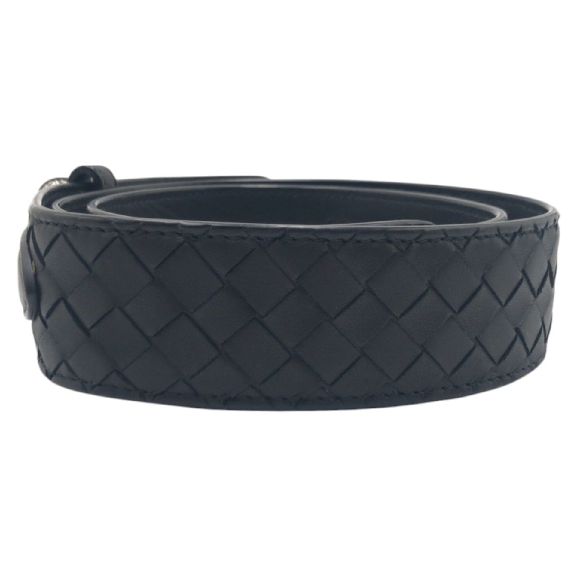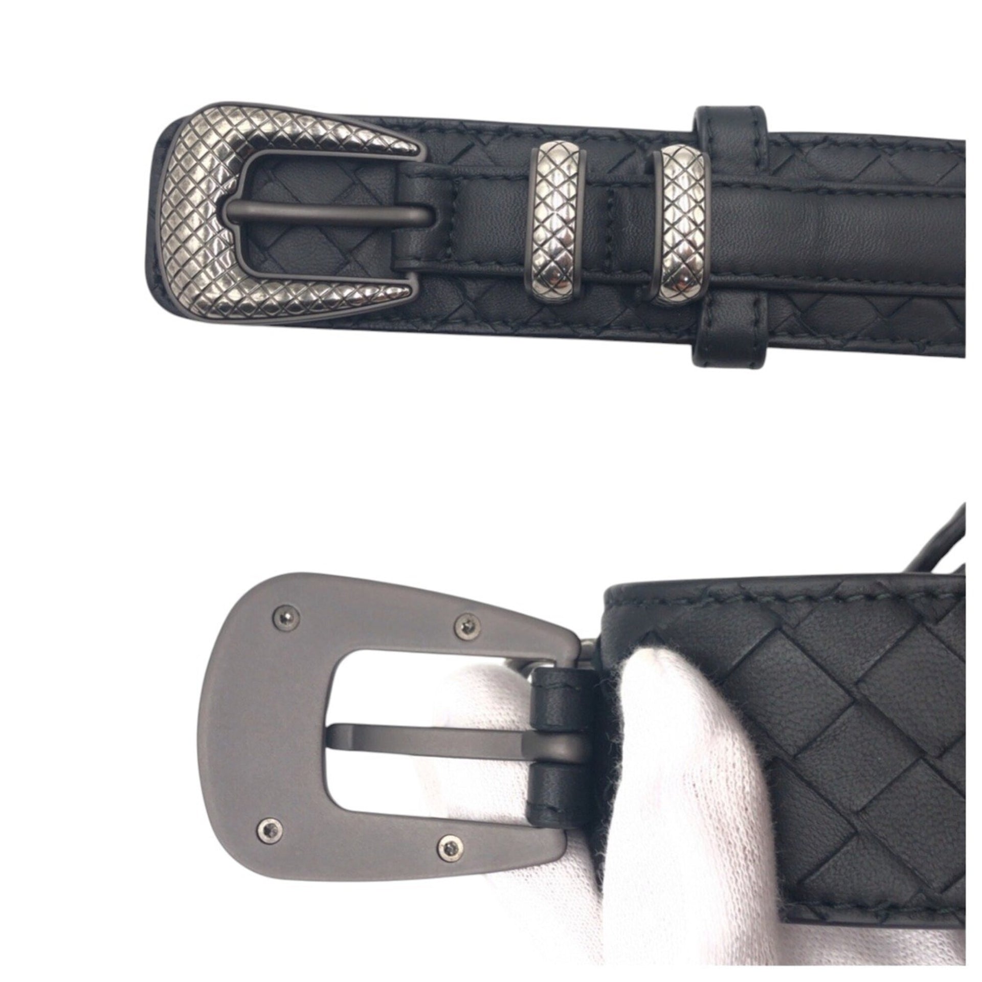 BOTTEGA VENETA Intrecciato 95 38 Black Silver Leather Belt for Men