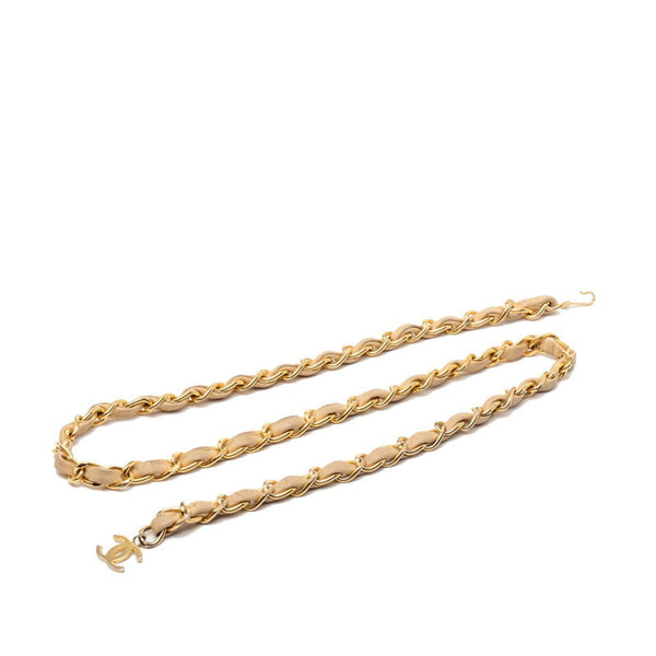 Chanel Coco Mark Chain Belt, Beige Gold Plated Leather, Women\'s CHANEL