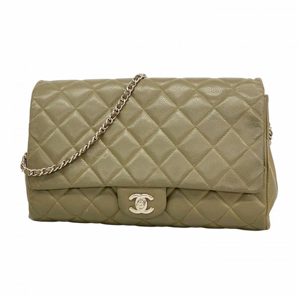 Chanel Matelassé Chain Shoulder Bag, Caviar Leather, Khaki Brown, Women\'s