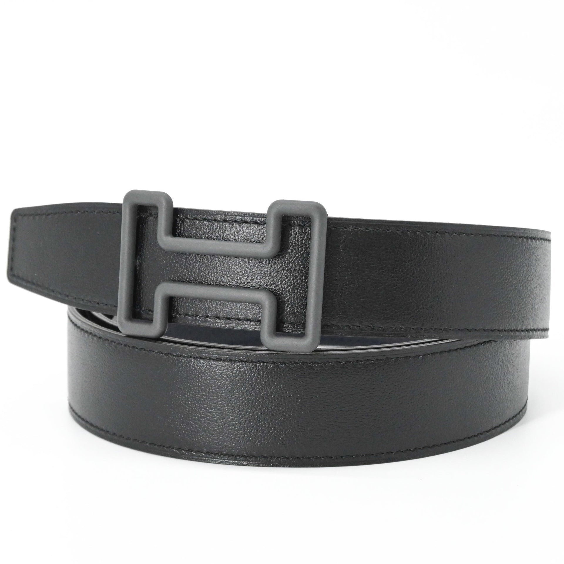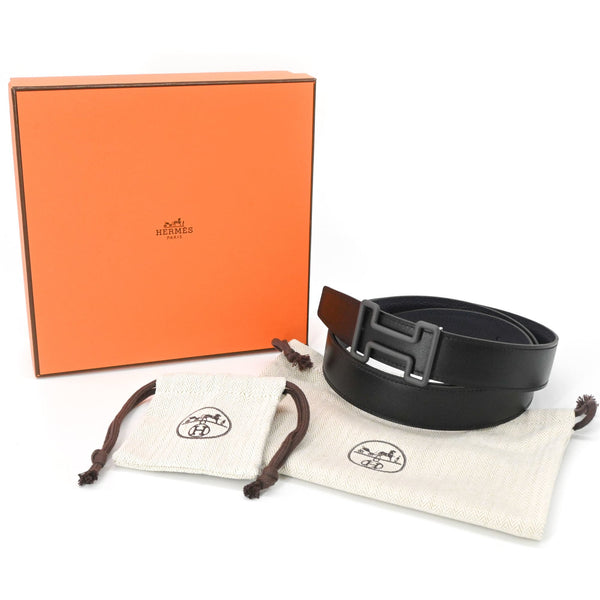 HERMES Bubble Tonight Constance Belt, Box Calf Togo Leather, Bi-color Reversible Black/Navy, W Stamp, #110