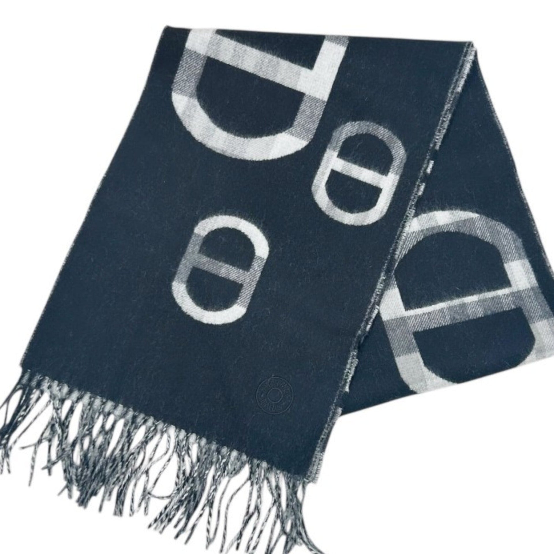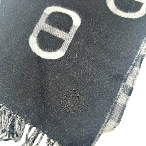 HERMES scarf/stole, tartan, maillon pattern, cashmere, check gray/black, for women and men.