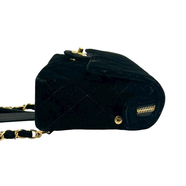 CHANEL Matelasse Coco Mark Velour Leather Chain Backpack in Black 23394