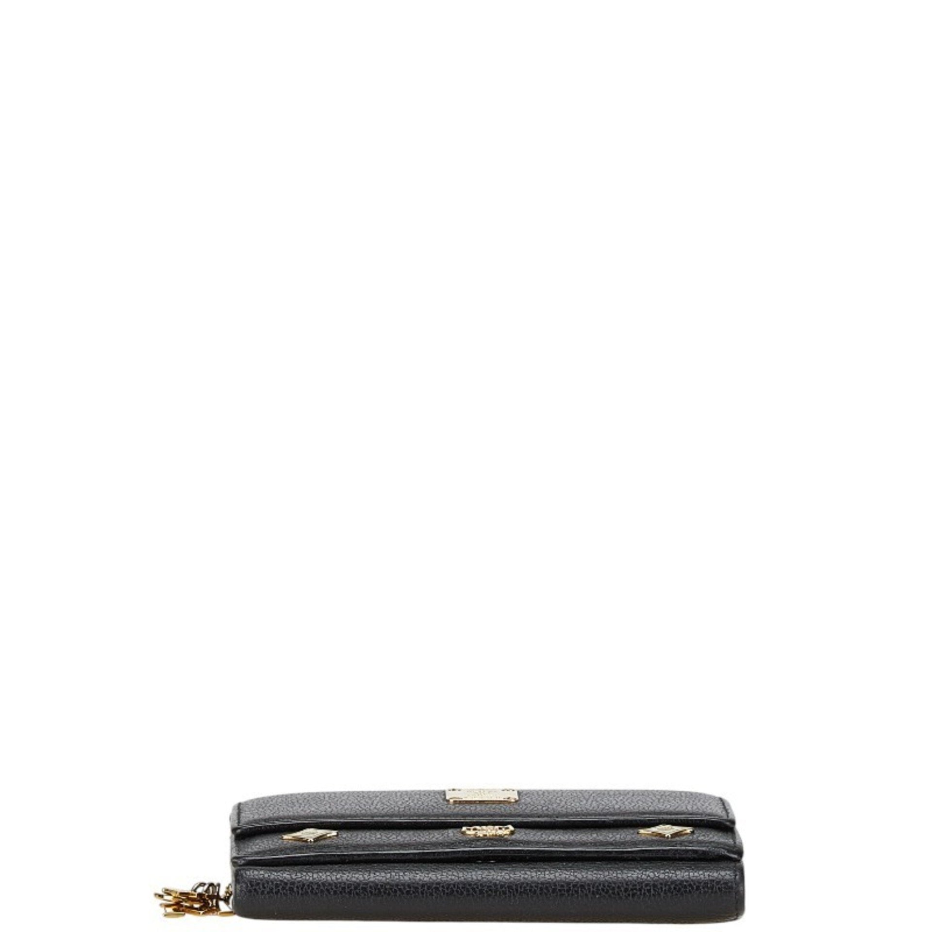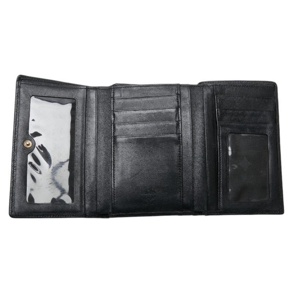 MCM Logo Metal Tri-fold Wallet Black Leather Women\'s