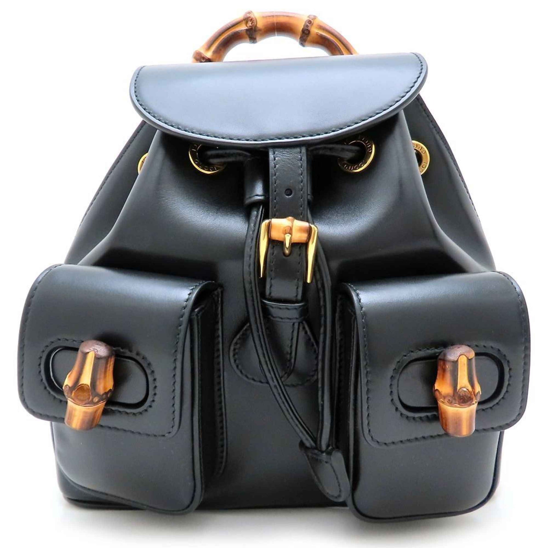GUCCI Bamboo Backpack 702101, Black Leather, Women\'s, 352756