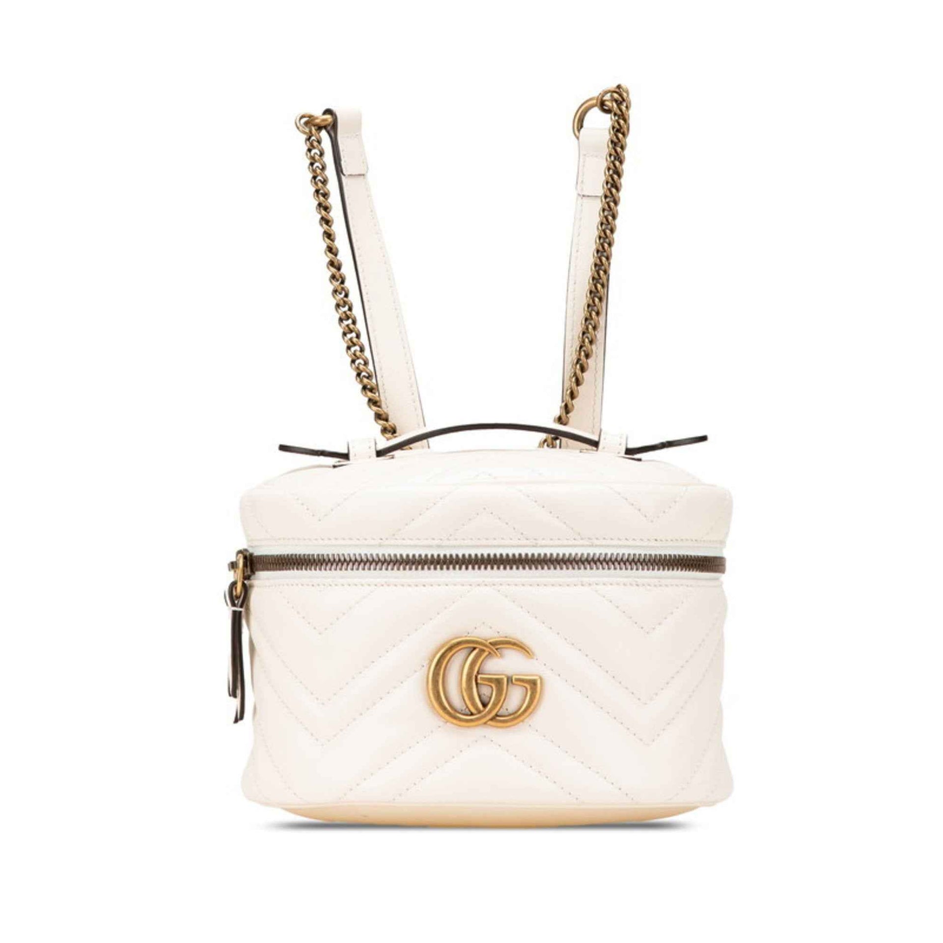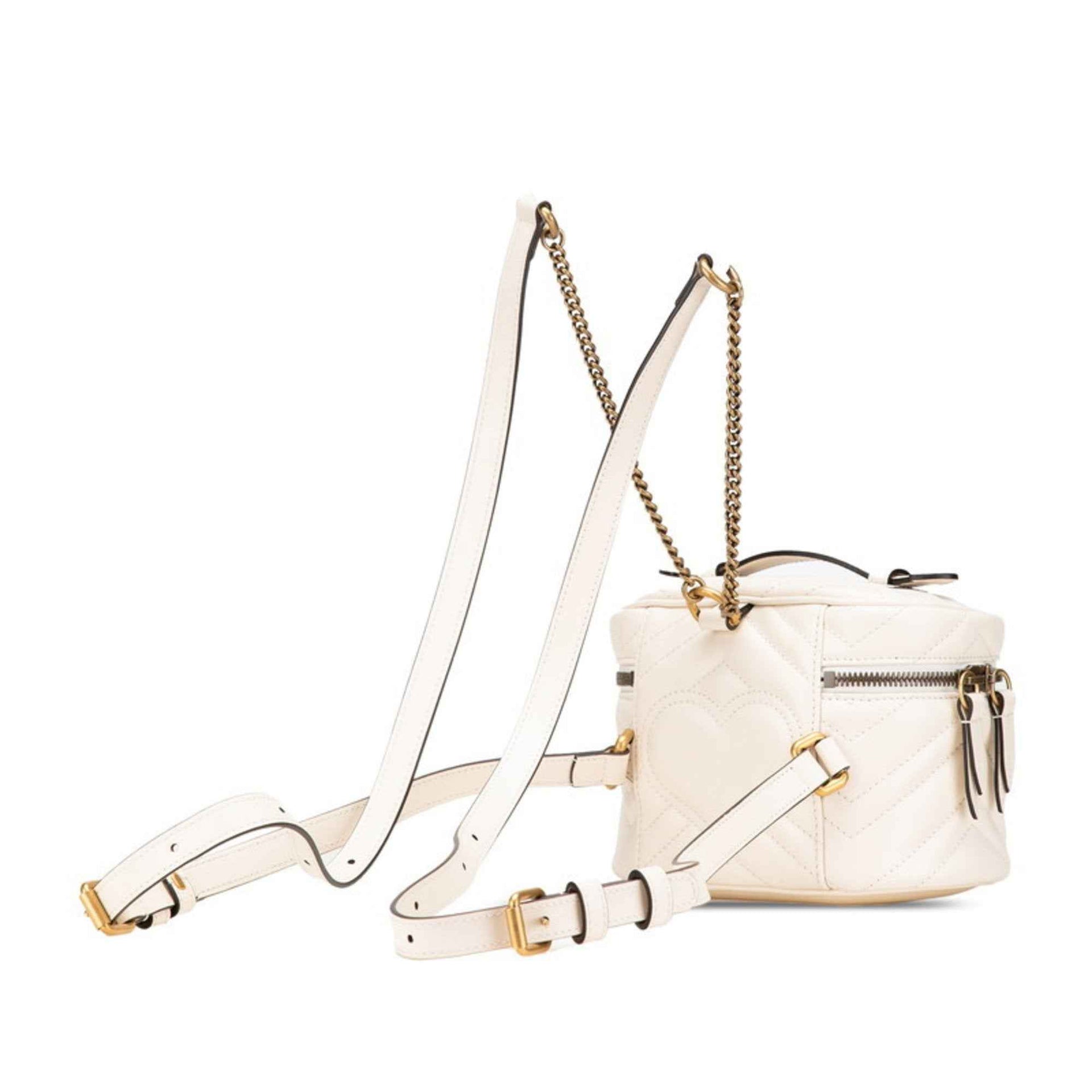 Gucci GG Marmont Backpack Vanity Bag 598594 White Leather Women\'s GUCCI