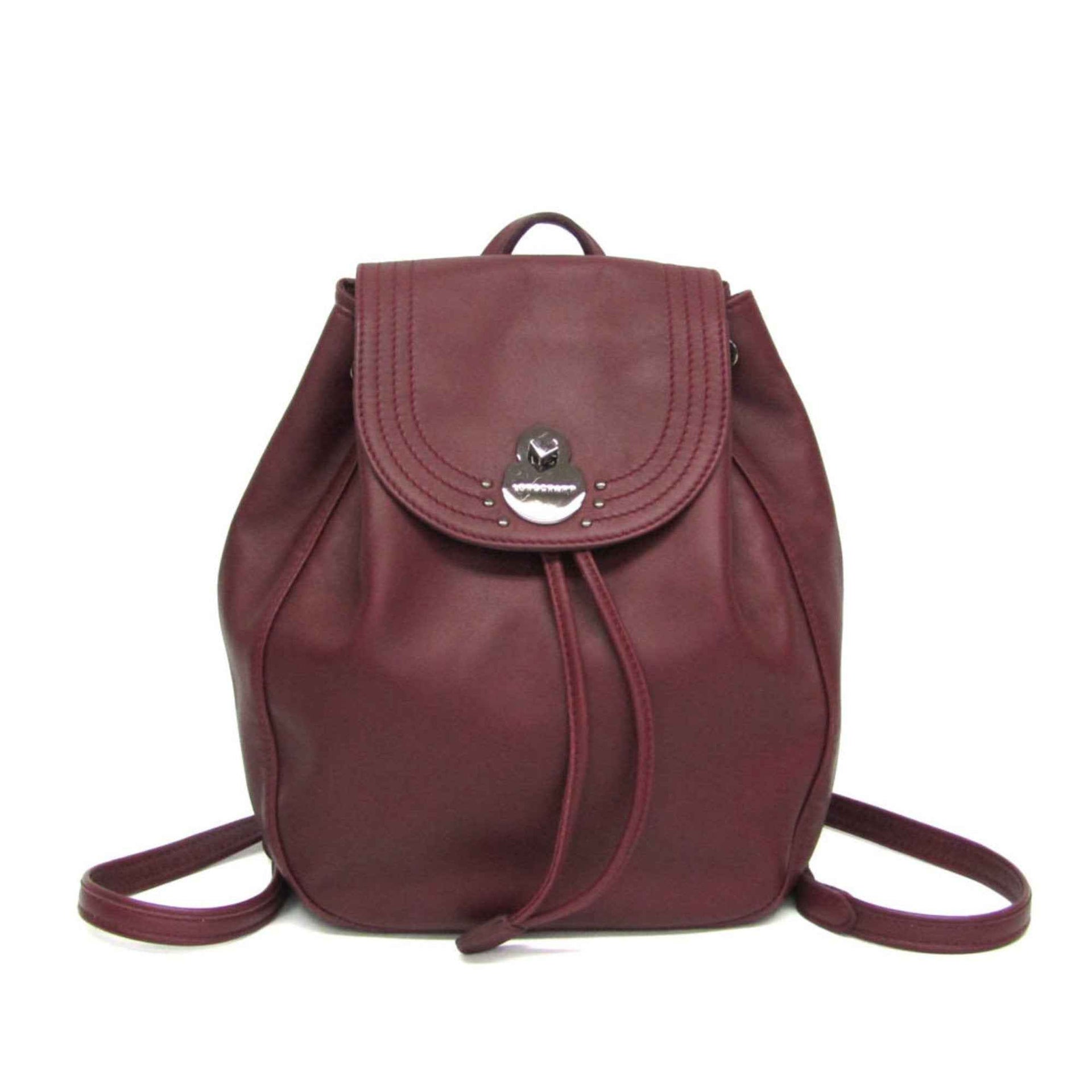 Longchamp Le Pliage Women\'s Leather Backpack Burgundy,Wine