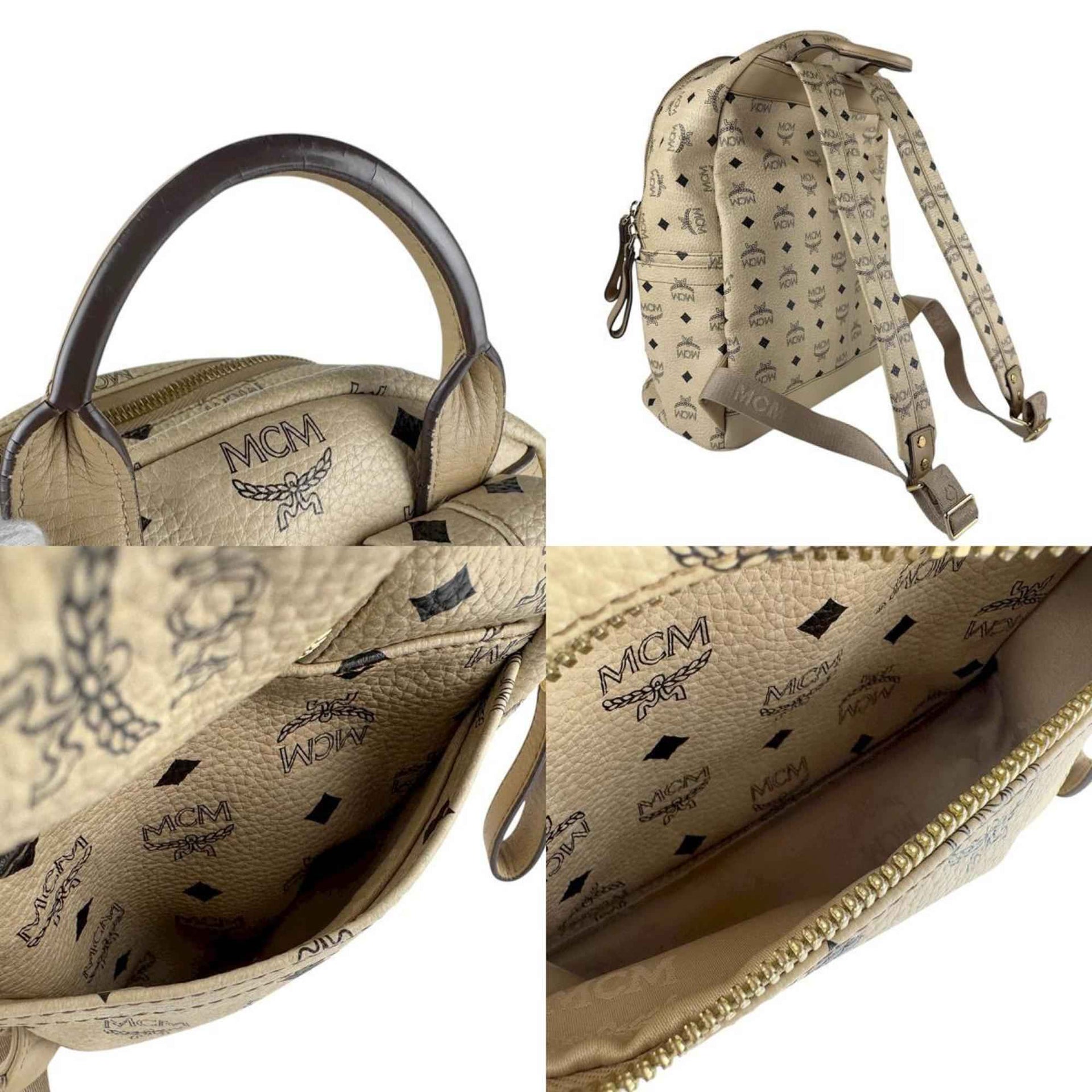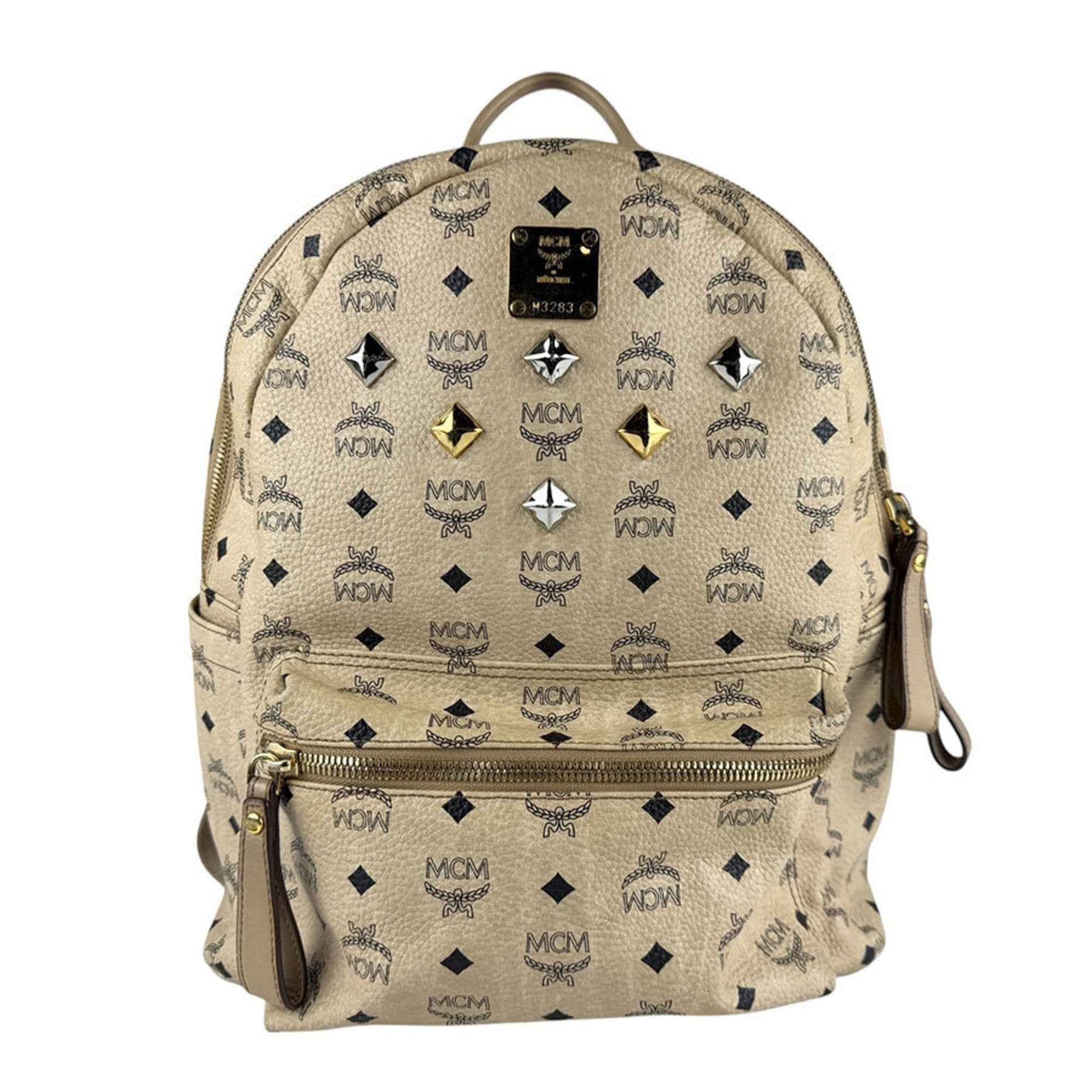 MCM Backpack, Leather, Beige, Men\'s/Women\'s, Z7539
