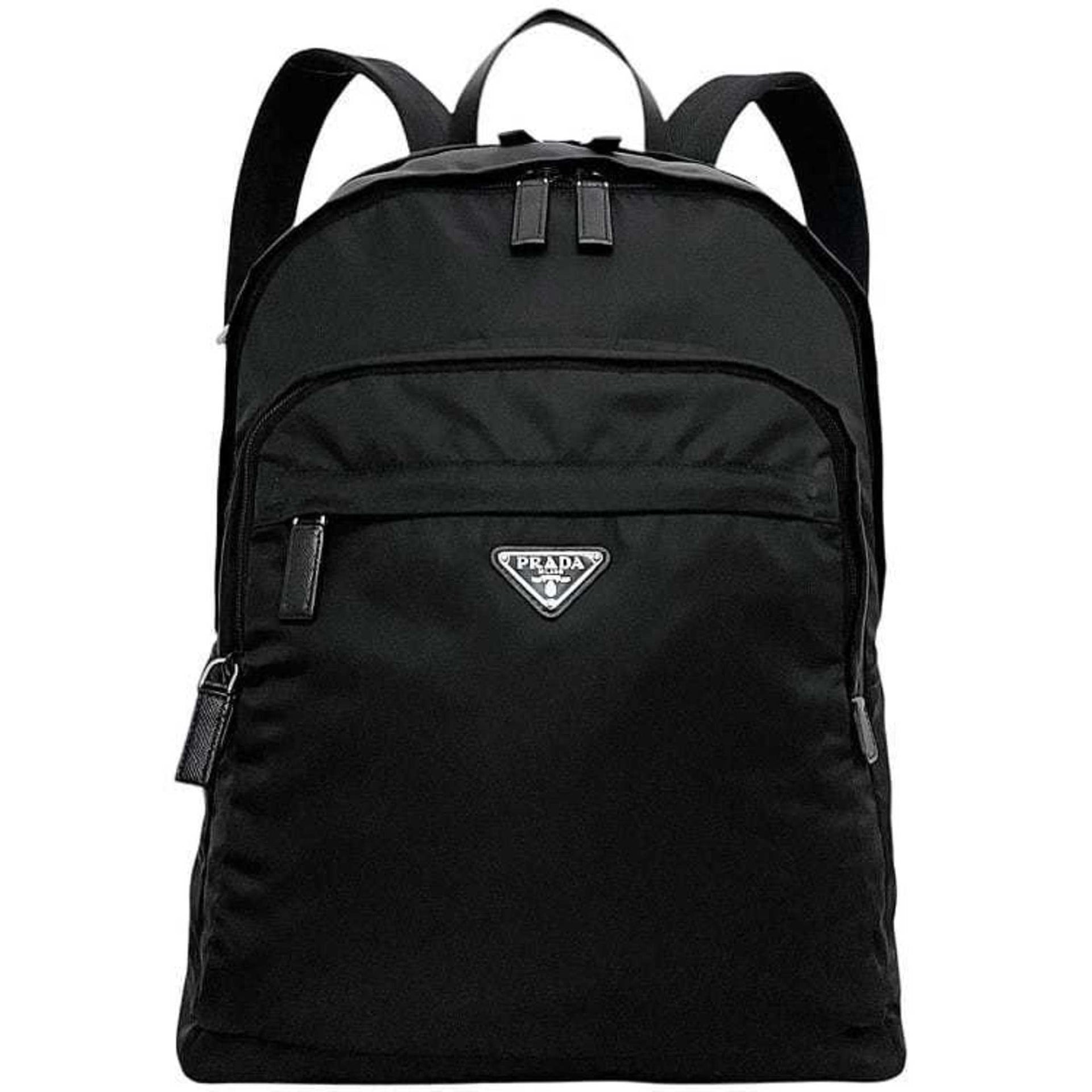 Prada Backpack f-24028 Black NERO Tessuto 2VZ048 Nylon Saffiano Leather 158/C PRADA RE-NYLON Triangle for Men and Women with Triangular Plate