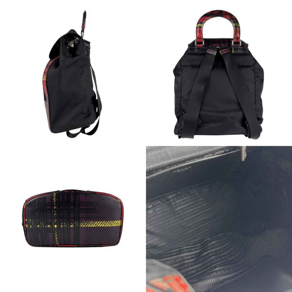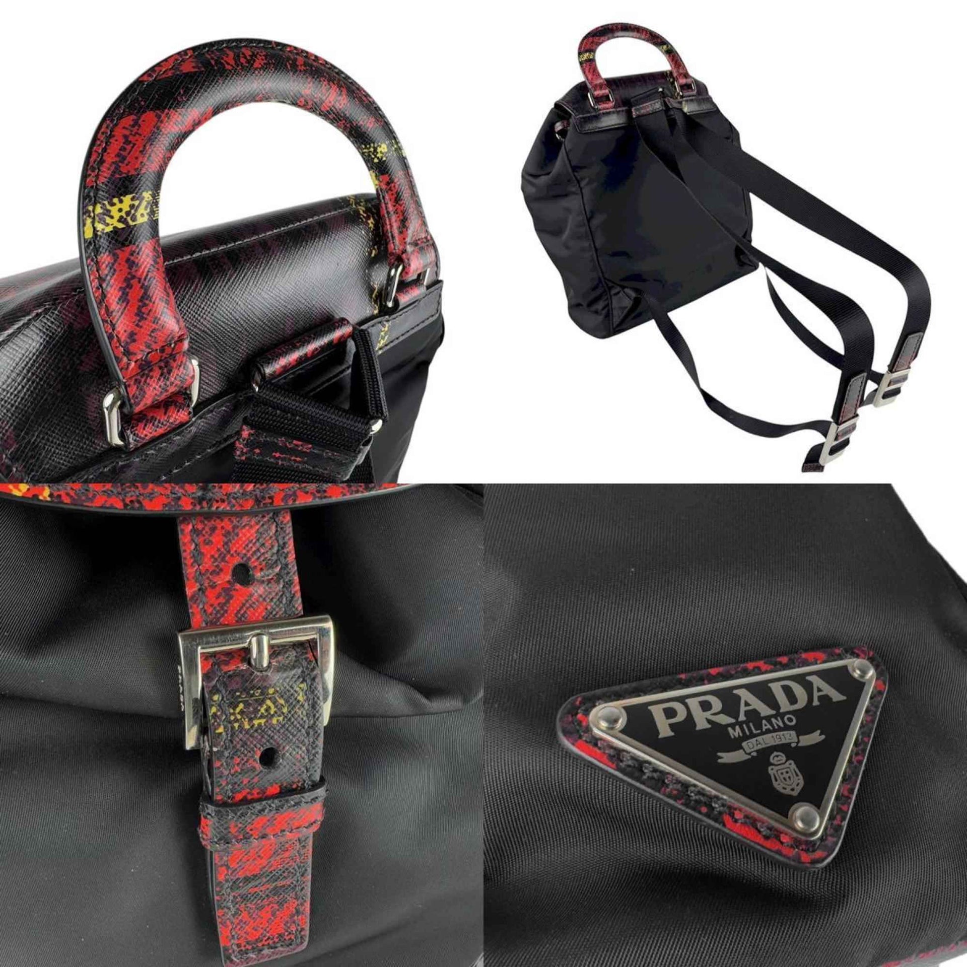 Prada PRADA Backpack Nylon Leather Black Red Silver Women\'s z7553
