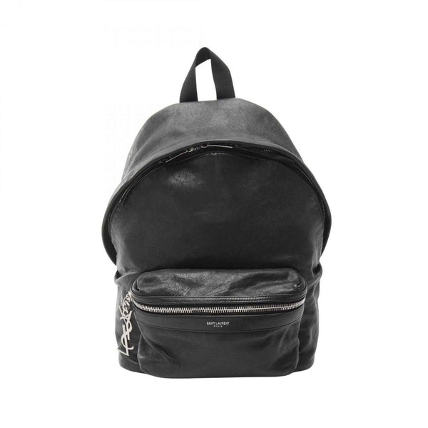 Yves Saint Laurent Saint Laurent Paris City Backpack, Leather and Canvas, Women\'s, Black, 462807