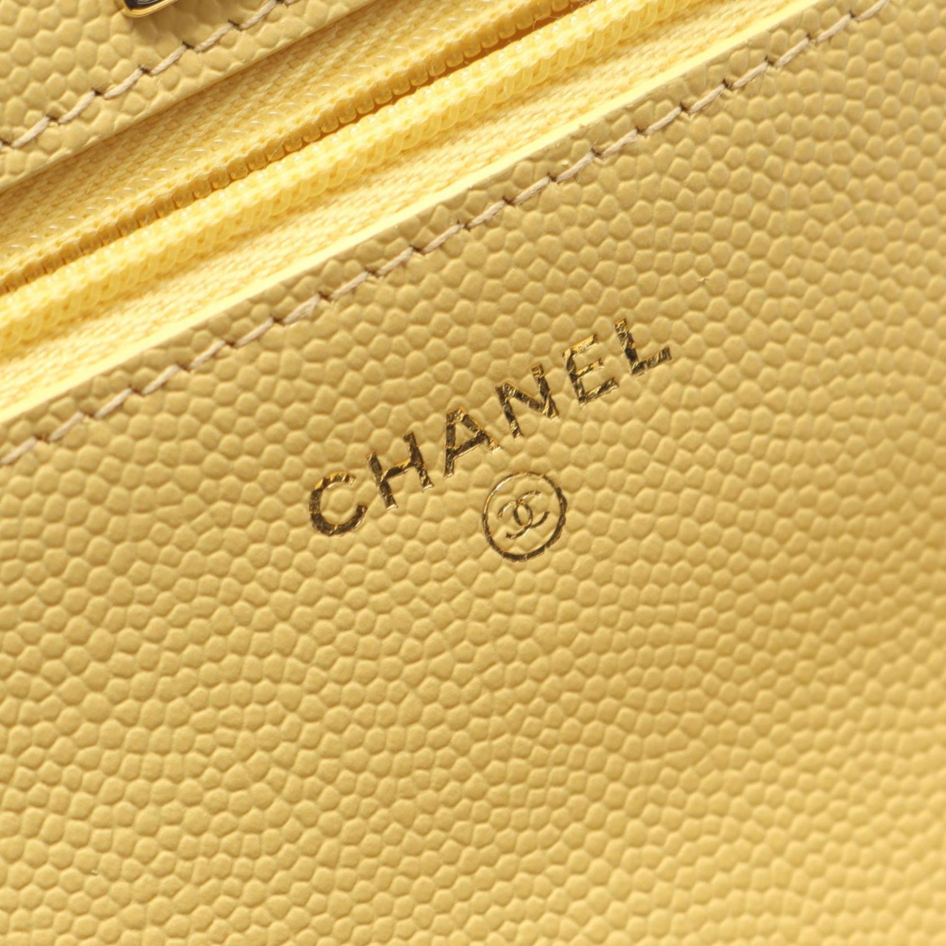 CHANEL Matelasse Top Handle Shoulder Bag in Grained Calfskin Caviar, Yellow