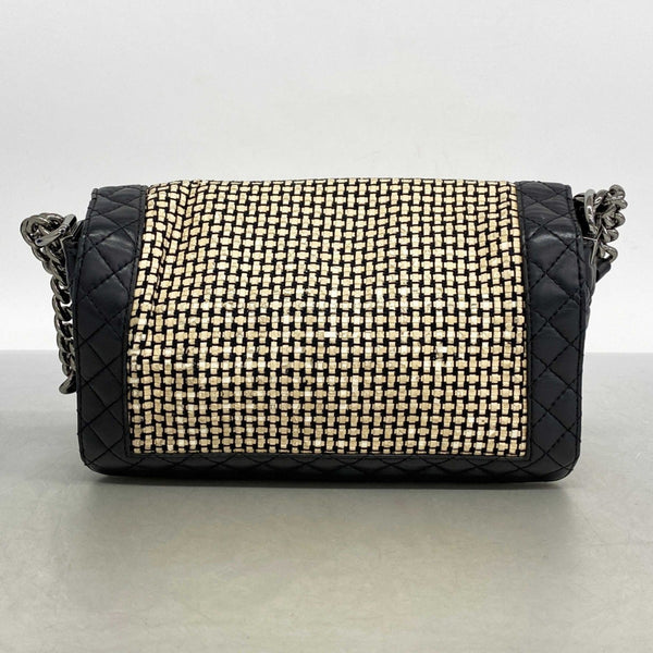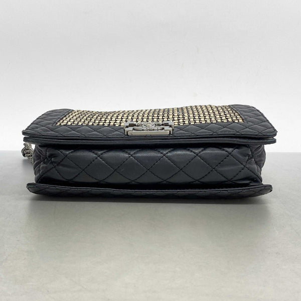 Chanel Shoulder Bag Boy Chain Lambskin Black Beige Women\'s