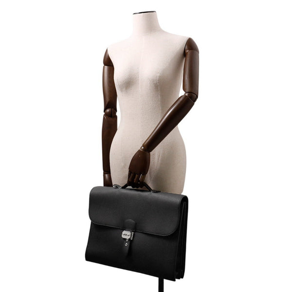 Hermes Sac A Depeche 38 Handbag, Black, Togo, T Stamp, Men\'s, Black